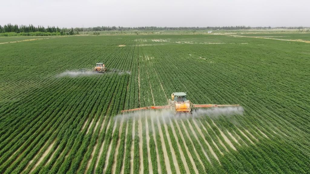 沙雅縣大田里作業(yè)的大型機(jī)械。(受訪者供圖)