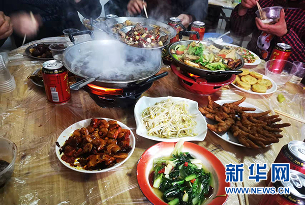 2月7日,當(dāng)?shù)剞r(nóng)歷虎年的第一場(chǎng)壩壩宴。新華網(wǎng)發(fā)(孫金芳 攝)