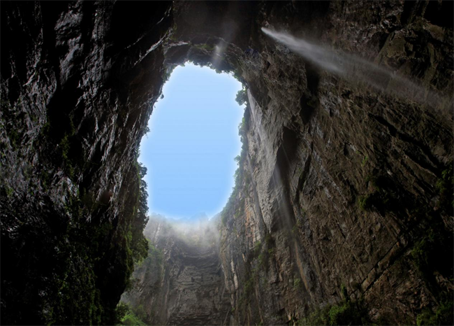 夕陽(yáng)下神秘幽深的神鷹天坑