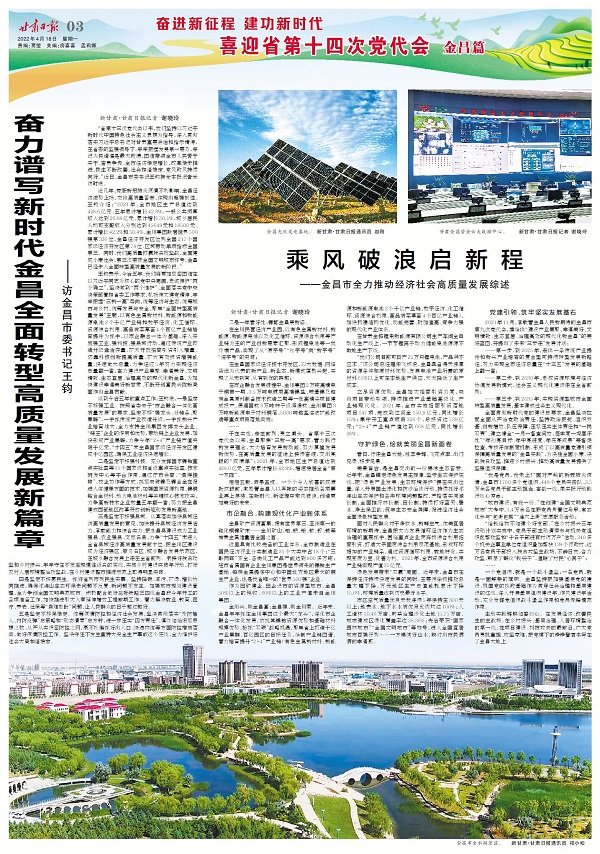 王鈞表示,今后五年,我們將更加緊密團(tuán)結(jié)在以習(xí)近平同志為核心的黨中央周圍,忠誠擁護(hù)“兩個(gè)確立”,堅(jiān)決做到“兩個(gè)維護(hù)”,全面落實(shí)黨中央決策部署和省委工作要求,弘揚(yáng)偉大建黨精神,牢牢把握“三新一高”導(dǎo)向,統(tǒng)籌經(jīng)濟(jì)與生態(tài),統(tǒng)籌城市與鄉(xiāng)村,統(tǒng)籌發(fā)展與安全,聚焦“全面轉(zhuǎn)型高質(zhì)量發(fā)展”主題,以有色金屬新材料、新能源和新能源電池2個(gè)千億產(chǎn)業(yè)鏈和數(shù)字經(jīng)濟(jì)、化工循環(huán)、資源綜合利用、高品質(zhì)菜草畜4個(gè)百億產(chǎn)業(yè)鏈培育提升為抓手,以市企融合一體為基礎(chǔ),深入實(shí)施強(qiáng)工業(yè)、強(qiáng)科技、強(qiáng)縣域行動(dòng),通過傳統(tǒng)產(chǎn)業(yè)改造升級盤活存量、擴(kuò)大開放招商引資引入增量、依靠科技創(chuàng)新提高質(zhì)量、擴(kuò)大有效投資增強(qiáng)能量,快速做大總量,力爭經(jīng)過5年努力實(shí)現(xiàn)經(jīng)濟(jì)總量翻一番,奮力建設(shè)產(chǎn)業(yè)集聚、幸福美好、文明精致、生態(tài)宜居、治理高效的現(xiàn)代化新金昌,為加快建設(shè)幸福美好新甘肅、不斷開創(chuàng)富民興隴新局面作出金昌貢獻(xiàn)。