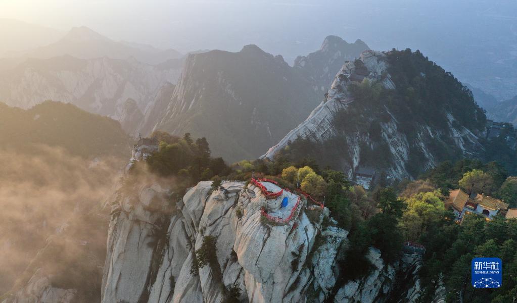夕陽下的華山(4月28日攝,無人機照片)。新華社記者陶明攝