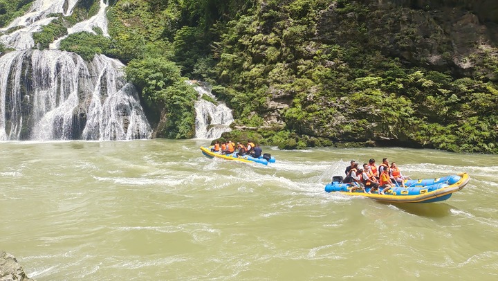 2022年5月3日,游人在湖南張家界茅巖河景區(qū)體驗(yàn)漂流。 吳勇兵 攝