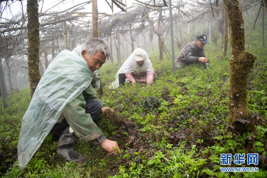 圖為村民在石柱縣冷水鎮(zhèn)玉龍村黃連種植基地內對黃連進行管護。新華網(wǎng) 耿駿宇 攝