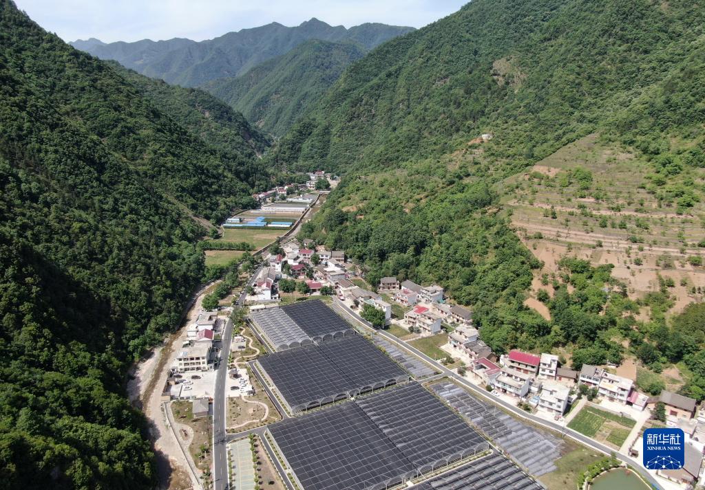 5月30日拍攝的陜西省商洛市柞水縣金米村的木耳大棚(無人機照片)。 新華社記者 李一博 攝
