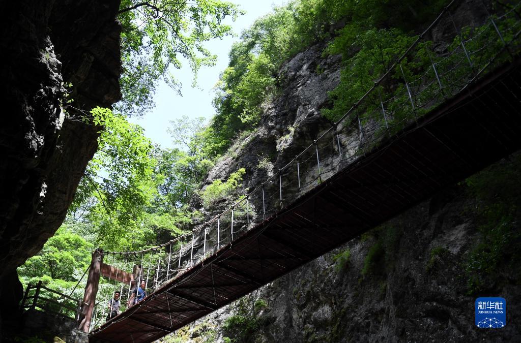 5月30日,游客在位于陜西省柞水縣的牛背梁國家森林公園內(nèi)游玩。 新華社記者 李一博 攝