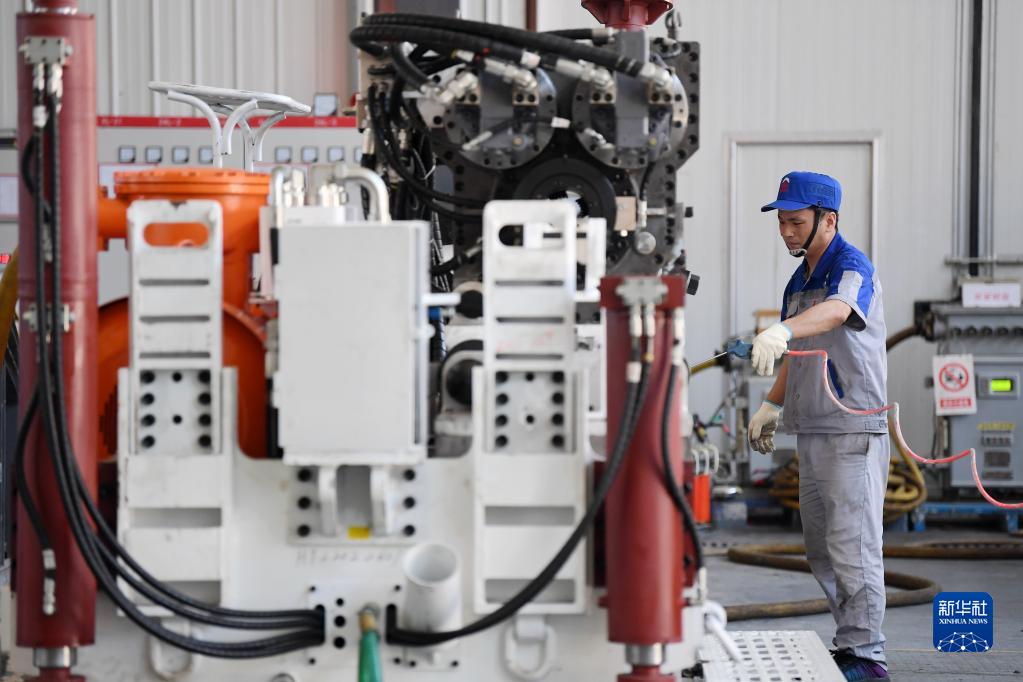 6月17日,在位于秦創(chuàng)原總窗口所在地陜西省西咸新區(qū)的陜西太合智能鉆探有限公司,工人準備對智能定向鉆機進行性能調(diào)試。 新華社記者 李一博 攝