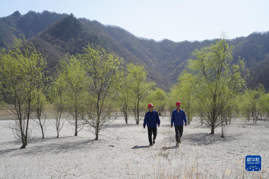 4月7日,金堆城鉬業(yè)集團有限公司工作人員在經(jīng)過生態(tài)治理后的木子溝尾礦庫內(nèi)巡查。 新華社記者 邵瑞 攝
