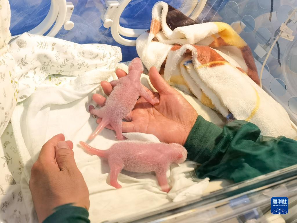 這是8月4日拍攝的海歸大熊貓“二順”產(chǎn)下的大熊貓雙胞胎幼仔。新華社發(fā)(重慶動物園供圖)