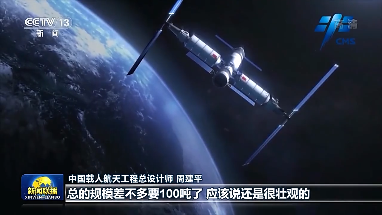 中國(guó)載人航天工程總設(shè)計(jì)師 周建平:總書記一直把航天強(qiáng)國(guó)建設(shè),作為實(shí)現(xiàn)中華民族偉大復(fù)興中的一個(gè)重要的組成部分。中國(guó)空間站最大構(gòu)型就是三艙三船,總的規(guī)模差不多要100噸,應(yīng)該說(shuō)還是很壯觀的。
