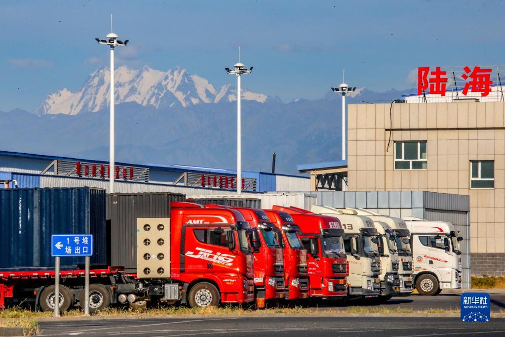 貨運卡車在烏魯木齊國際陸港區(qū)排隊等待檢驗(2022年7月14日攝)。新華社發(fā)(蔡增樂 攝)