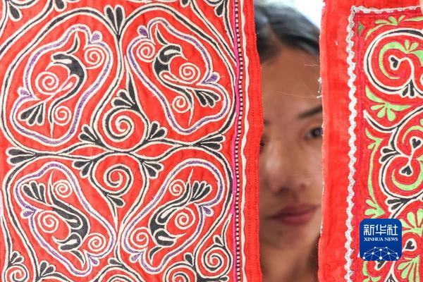 村口一家苗繡車間中,27歲的苗族姑娘楊文麗正帶著繡娘們飛針走線,趕制頗具苗族特色的旅游文創(chuàng)產(chǎn)品,一幅9米長的苗繡長卷即將完工。長卷畫面上,錯(cuò)落有致的民居掩映在青山綠水間,身著少數(shù)民族服飾的村民們載歌載舞。