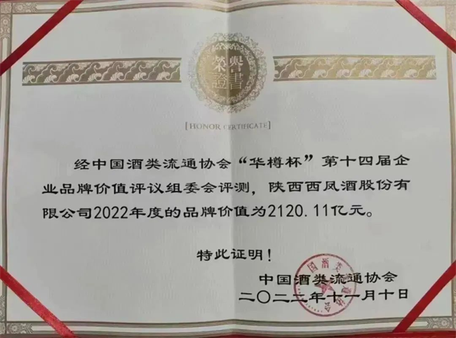 西部決策網(wǎng)訊(記者艾米杰 韓宗憲 通訊員 彭靜宜 張桓瑞)2022年11月10日,“華樽杯”第十四屆中國酒類企業(yè)品牌價值暨第五屆國際酒類產品品牌價值發(fā)布會在貴陽舉行。西鳳酒以2120.11億元的品牌價值名列中國白酒品牌榜前列,被授予“中國最受歡迎鳳香型白酒品牌”“全球烈酒十強品牌”“中國陜西省白酒品牌價值第一名”等多項榮譽。西鳳酒從首屆“華樽杯”的69.23億元到如今的2120.11億元,14年間,西鳳品牌價值增長31倍。“紅西鳳”榮獲2022年度“華樽杯”最受歡迎鳳香型白酒品牌,2022年度品牌價值高達1228.78億元。