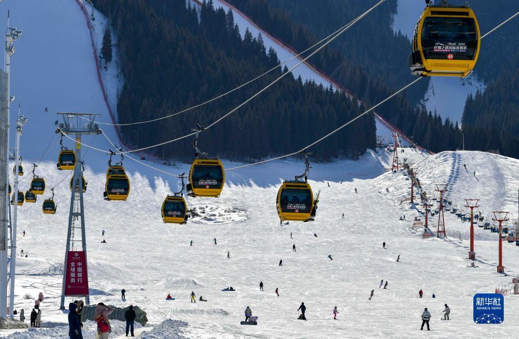 天空湛藍清澈,大地銀裝素裹……在新疆阿勒泰地區(qū)的雪道上,游客王先生和家人在冰雪世界中盡情馳騁。
