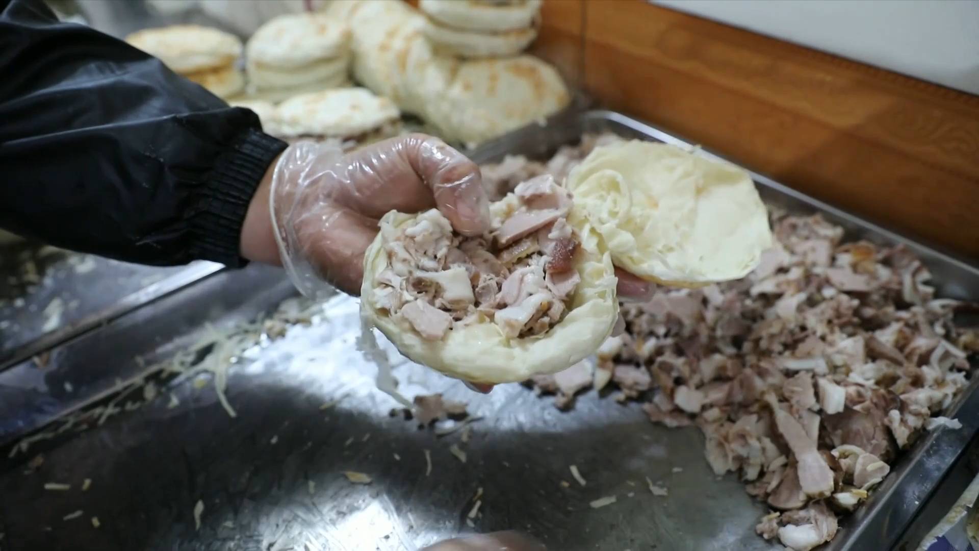 作為擁有千年歷史的餐飲名片,陜西潼關(guān)肉夾饃就在這里誕生,其制作工藝入選陜西省級非遺名錄。