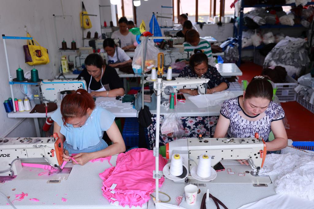 2023年7月18日,山東省無棣縣棣豐街道賈店村居民在微工廠內(nèi)忙碌。目前,棣豐街道已發(fā)展微工廠9家,帶動就業(yè)400余人。新華社記者朱崢 攝