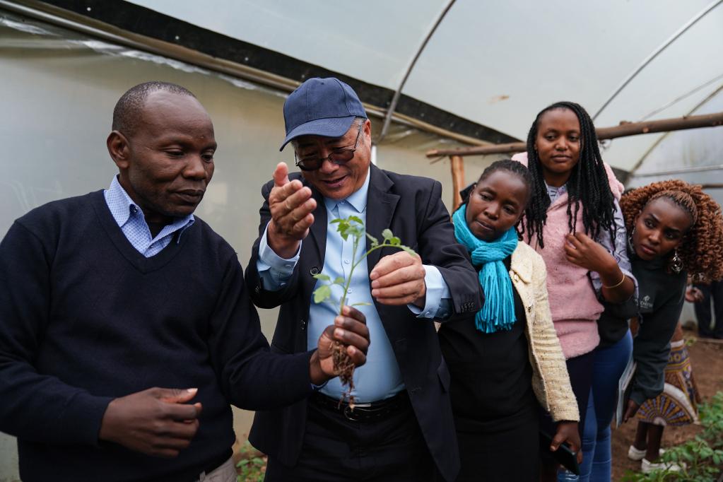9月18日,在肯尼亞納庫魯郡馬坦吉提薩村,來自中國的農(nóng)學教授劉高瓊(左二)為肯方學員指導農(nóng)業(yè)技術。(新華社記者韓旭攝)