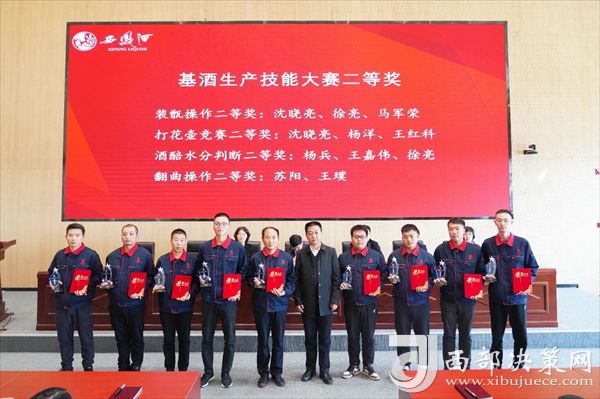 會上,杜萍宣讀了《關(guān)于對西鳳集團第七屆基酒生產(chǎn)技能大賽獲獎集體和個人的通報》和《關(guān)于西鳳集團第三屆白酒品評技能大賽比賽結(jié)果的通報》。與會領(lǐng)導(dǎo)分別為獲獎車間和個人頒發(fā)了獎牌和榮譽證書;獲獎個人代表903車間沈曉亮、酒體設(shè)計中心靳苗苗分別進行 了發(fā)言;全體職工還齊誦了《西鳳酒賦》。