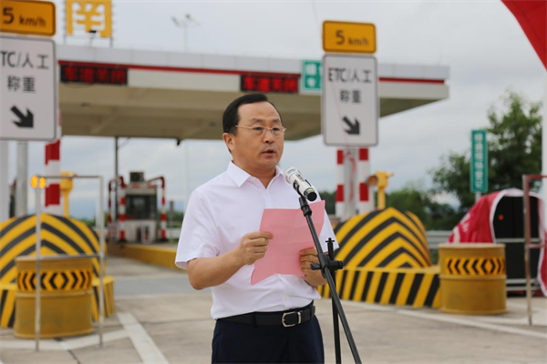 肇慶市副市長謝桂坤宣布東進(jìn)大道三期工程蓮花南互通立交及收費(fèi)站正式開通