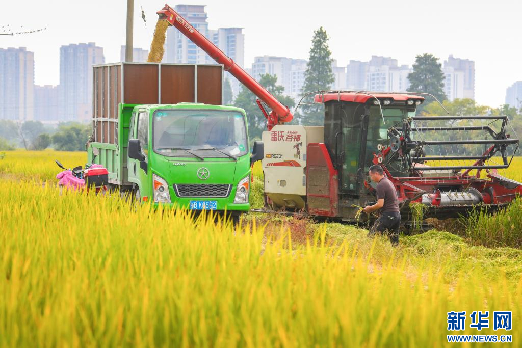 稻田里,沉甸甸的稻穗掛滿枝頭。
