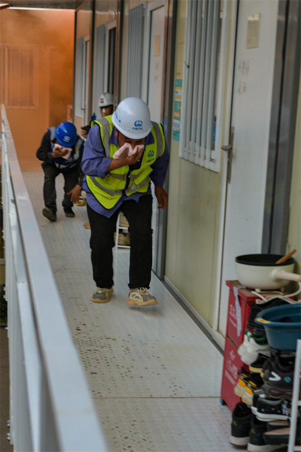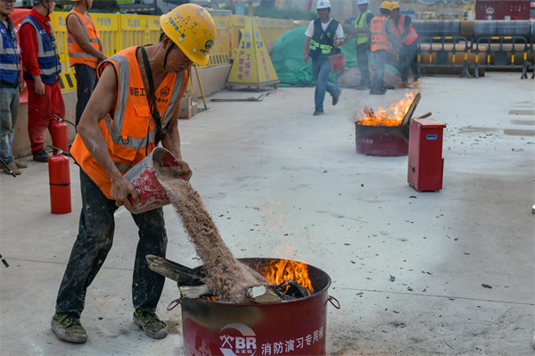 11月9日是第32個(gè)全國消防日。這次消防演練模擬火災(zāi)發(fā)生后如何使用干粉滅火器、干沙滅火,生活區(qū)宿舍起火員工俯身毛巾捂住口鼻逃生、昏迷受傷員工的轉(zhuǎn)移救治,以及消防救援機(jī)構(gòu)的介入救援等方面進(jìn)行演練。項(xiàng)目監(jiān)理單位點(diǎn)評(píng)時(shí)認(rèn)為,此次演練基本上是按照實(shí)景進(jìn)行的,進(jìn)一步增強(qiáng)了項(xiàng)目的應(yīng)急應(yīng)變、團(tuán)隊(duì)協(xié)調(diào)和處置保障能力,為應(yīng)對(duì)突發(fā)事件積累寶貴經(jīng)驗(yàn),保證安全生產(chǎn)工作全面落實(shí)。