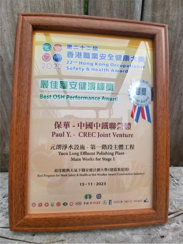 近日,由香港特別行政區(qū)職業(yè)安全健康局舉辦的“第二十二屆香港職業(yè)安全健康大獎分享會暨頒獎典禮”在香港會議展覽中心舉行,大獎通過嘉許致力推行工作安全及健康措施的機構(gòu),提高各界的職安健表現(xiàn)。會上,由中鐵一局一公司參與承建的香港元朗凈水設(shè)施——第一階段主體工程項目喜獲建造業(yè)組別“最佳酷熱天氣職安健計劃大獎——金獎”“最佳職安健演繹獎——銀獎”兩項大獎。