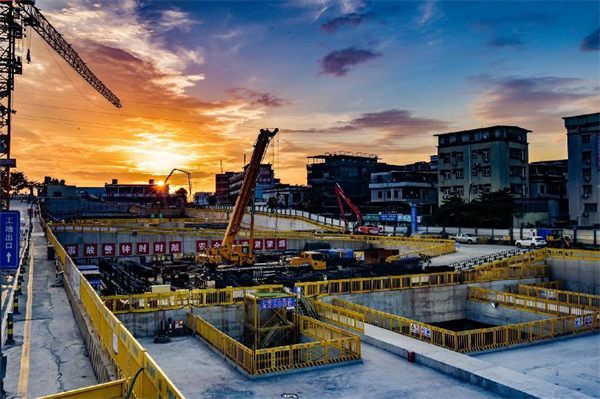 據(jù)項(xiàng)目部常務(wù)副經(jīng)理吳躍華介紹,白坭坑站目前投入電動(dòng)抓斗3臺(tái)、長(zhǎng)臂挖掘機(jī)1臺(tái),短臂挖機(jī)6臺(tái)、25噸汽車起重機(jī)3臺(tái),100噸汽車起重機(jī)1臺(tái)、塔吊2臺(tái)、土方運(yùn)輸車40臺(tái),各工種作業(yè)人員400人。日平均出土量約2000立方米、綁扎制作鋼筋45噸。