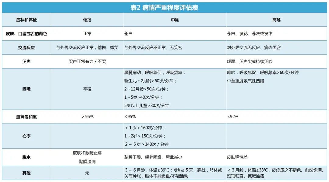 注:存在高危中任意一項(xiàng)表現(xiàn),即判定為高危;存在中危中任意一項(xiàng)但無(wú)高危表現(xiàn),即判定為中危。低危的發(fā)熱兒童可在家中護(hù)理;中危的發(fā)熱兒童,應(yīng)盡快就診;高危的發(fā)熱兒童,應(yīng)立即就診。