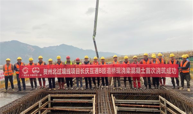 3月6日下午3點(diǎn),經(jīng)過(guò)作業(yè)人員8個(gè)小時(shí)連續(xù)鏖戰(zhàn),由中鐵一局三公司承建的賀州北過(guò)境線長(zhǎng)慶互通B匝道橋完成首次350方混凝土澆筑,按下了項(xiàng)目復(fù)工復(fù)產(chǎn)的加速鍵。