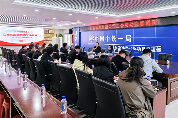 近日,中鐵一局工會(huì)工作部副部長(zhǎng)閆劍波一行到一公司廣清城際項(xiàng)目開(kāi)展勞動(dòng)競(jìng)賽調(diào)研指導(dǎo)工作。一公司工會(huì)副主席王萍及生產(chǎn)部、人力部、項(xiàng)目部等相關(guān)人員參會(huì)。